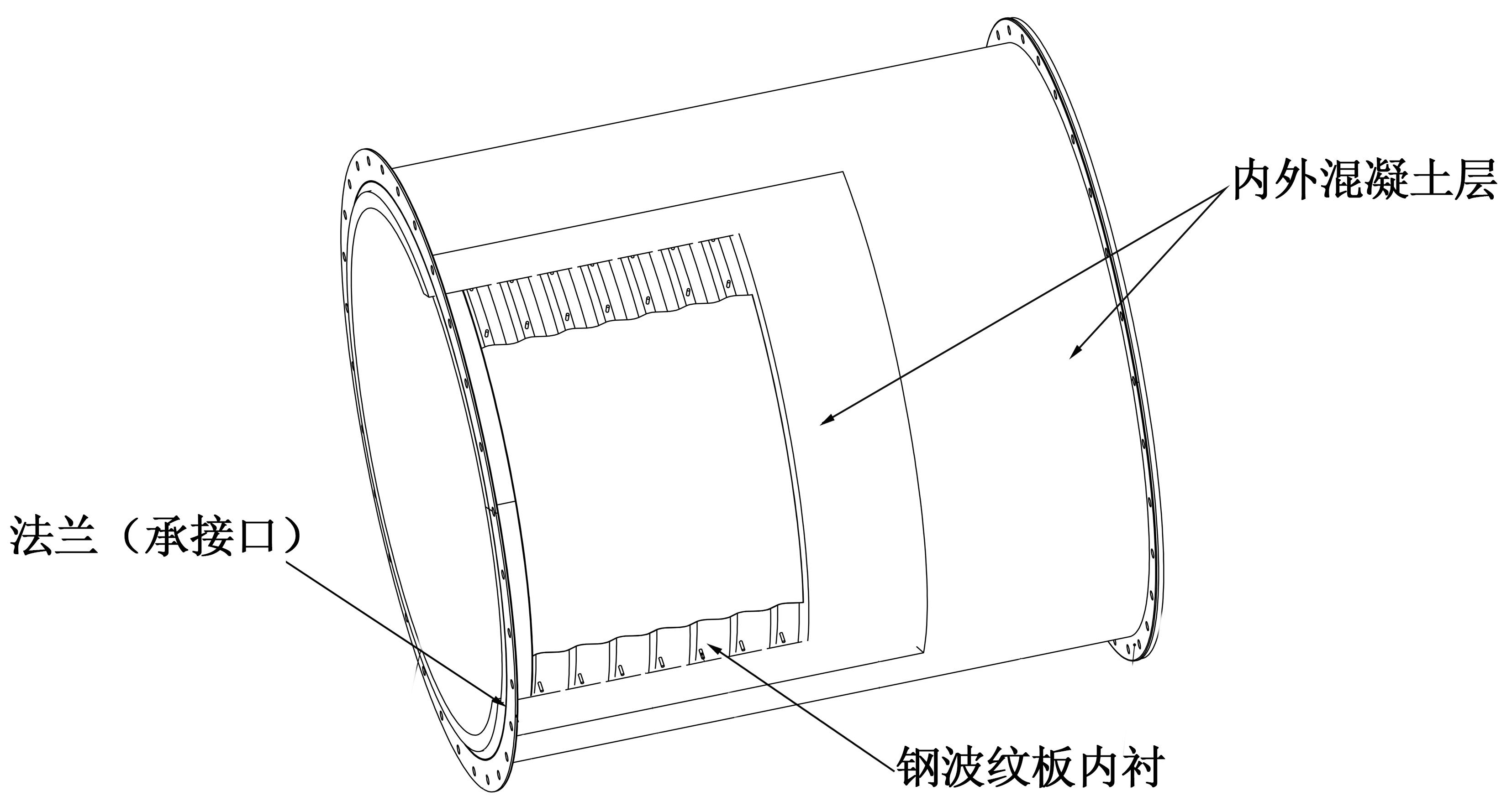 2、采用鋼波紋板作為內襯構成鋼波紋管目的為鋼波紋管剛性強度高,管道結構受力合理,有一定的抗變形能力,并且具有橫向位移補償能力,對鋼波紋板混凝土復合管構成的管道形成雙層保護作用。
