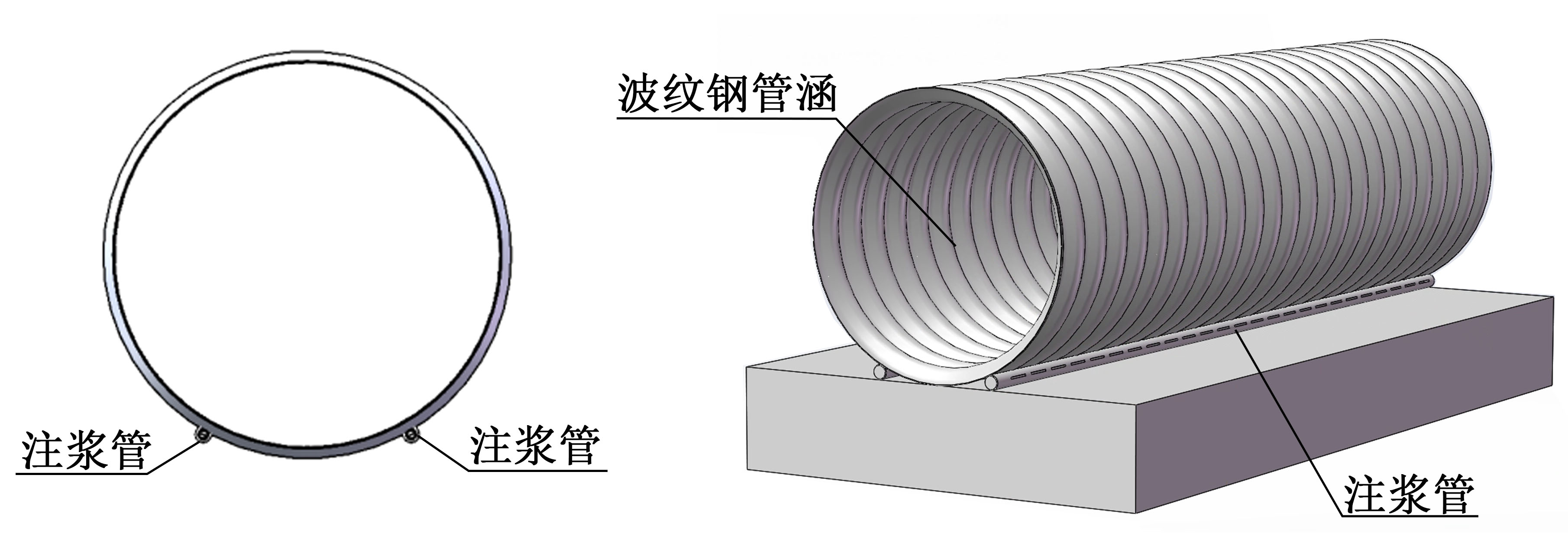 因此楔形部位密實采用高壓注漿技術(shù),在管體兩楔形部位預(yù)留注漿管,注漿管體多處留有出漿孔,當(dāng)管體兩側(cè)回填壓實后,再用高壓泵注入膨脹灰漿來增加楔形部位密實度,采用高壓注漿技術(shù)密實度高,無死角,環(huán)保、節(jié)能,縮短工期,節(jié)約成本,工程質(zhì)量得到大大提高。