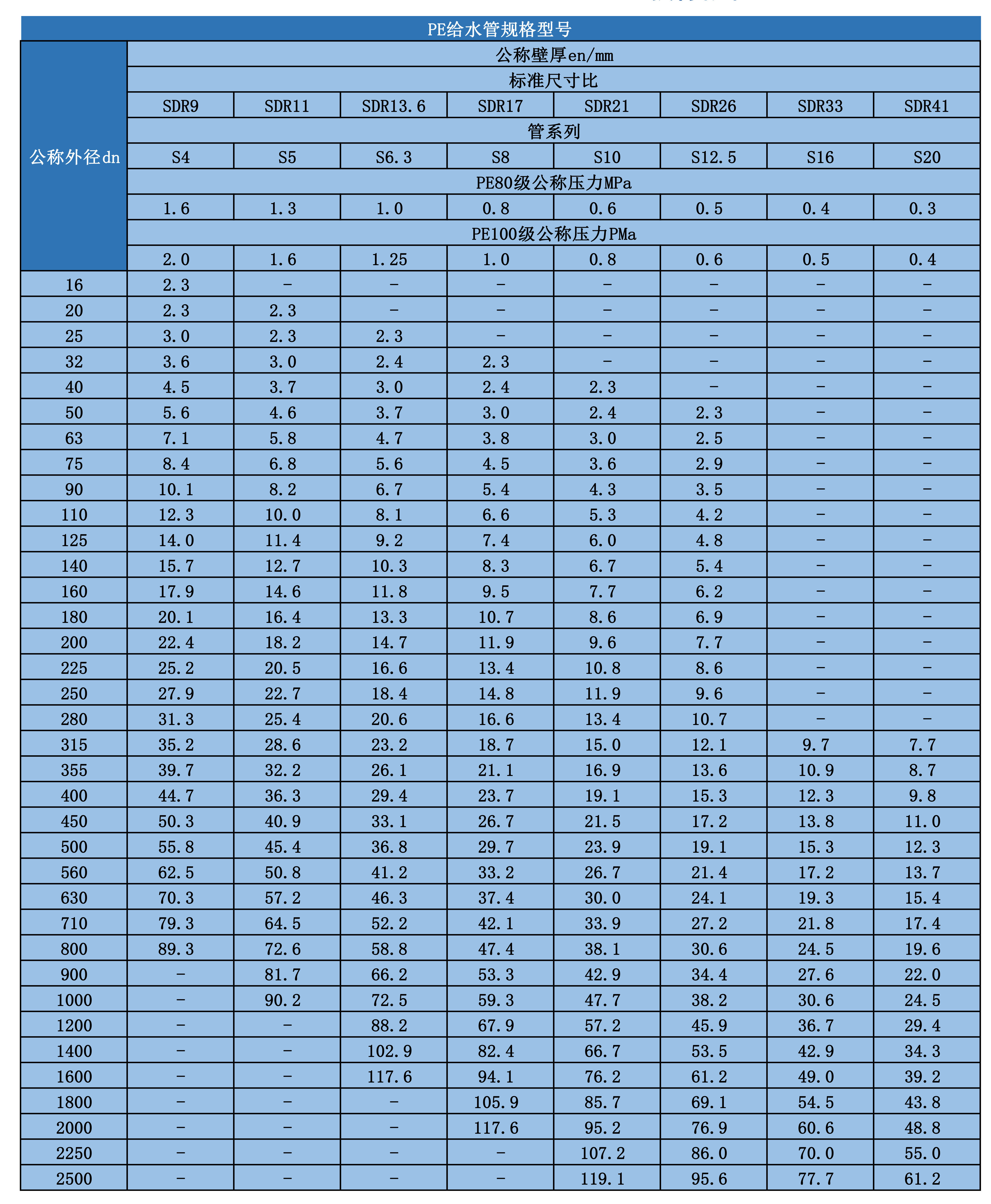 三、給水管技術指標